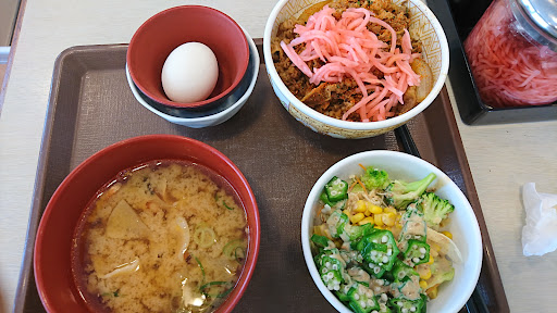 Read moreすき家で久々に朝ごはん。 カレーライスを食べました。 サイズはミニ390円 ここ最近の値上げラッシュで、ちょっと値段があがってました。 味の方ですが、白米は美味しくないので少なめカレーについては安いレトルト味でコクも何もないです。 朝の早くから開店してることと取り敢えず空腹を紛らすだけとしてはコレで良いと思います。 お店も汚くテーブルも汚いです バイトの数が少ないのが原因でしょう。 スタッフの方も普通に対応されてます。 支払いは現金だけでなくpay...