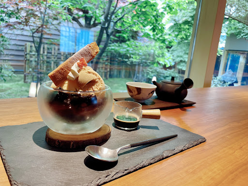 黒豆茶と一緒に。出される器等も素敵です。 コーヒーゼリーは喫茶店などではフレッシュミルクが定番ですが、こちらではアフォガードのように熱々エスプレッソをかけて… アイスもミルクと珈琲二つの味が楽しめ、とてもおいしかったです。 妊婦だと気づいて優しくひざかけのご提案やカフェインの摂取についてお声掛けもいただきました。 接客くださった3名ともとても物腰が柔らかく丁寧...