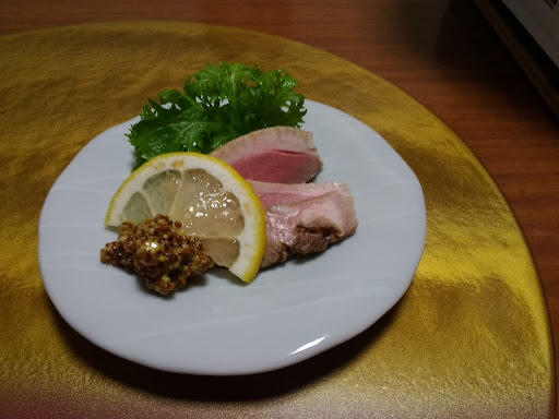Read more伝統の坂網猟で捕った天然鴨食べてきました。 12,000円コース。ボーナスでましたからね。 内容はかも味噌、酢の物、串焼き2本、天ぷら、治部鍋、おじや(またはうどん)。串焼きと合鴨ロースは追加注文しました。 個室で椅子席だったので楽チン。でも靴は脱ぐスタイル。 天然鴨は色がすごいですね赤い。そして感じる鉄分。どれも美味しいんですが、串焼きと鍋は別格でした。しめのおじや最高かよ。 一品一品運ばれてきて、鍋は目の前で片栗粉と小麦粉を混ぜた粉を肉にまぶして、食べ頃になるまで煮て取り分けるところまでお店の方がしてくれました。しめのおじやも、ご飯が野菜と鴨の旨味が染み込んだ出汁を全部吸うまで混ぜてから提供してくれました。これが最高にうまい(´ω`) 坂網猟では鴨が一匹もとれずに終ることもままあるとのことで、その場合は合鴨を使った9,000円のコースに変更されるとのことでした。食べれてラッキー。食後に加賀市発行の認定証まで貰えましたよ! ずっと食べてみたかった天然鴨。美味しかった...