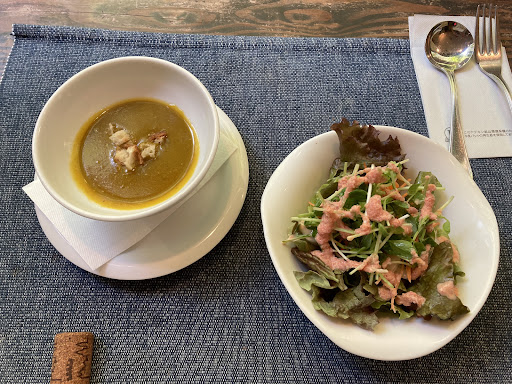 加賀温泉駅周辺のでは、かぼちゃ村にあるレストランがおすすめと聞いて訪れました。 日曜日の12:30に到着したのでお客さんは大勢いらっしゃいましたが、カウンターテーブルにはスムーズに座れました。 1,300円のランチメニューでは、ドリンク、サラダ、スープ、バゲット、そして、メインを6種類のパスタまたはピザから選ぶことができるため、私はカボチャとマスカルポーネチーズのピザ、マルゲリータピザを選びました。 (マルゲリータピザの場合は+200円でした) オリジナルドレッシングのサラダ、濃厚なカボチャのポタージュ、(季節ごとに変わると思われます)は普通に美味しいです。 しかしなんといっても、メインのピザがとにかく美味しい‼︎ ピザの生地はもちもち柔らかめで、クリスピー派の私としては残念でしたが、それでも好きになるくらい、具材とソースが美味しかったです。 特にマルゲリータピザには、モッツァレラチーズがふんだんに入っており、また、トマトソースはトマトの香りが高くて美味しい!嫌な酸味が全くない🍅 久しぶりに美味しいピザを食べて大満足でした! ちなみにカウンターテーブルからは外の癒される景色が見れます🎋 今度はパスタ...