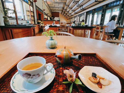 A place with resilience. Picking up a cup of hot tea and a dessert. You could enjoy an hour or two here with the beautiful scene from the garden.