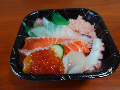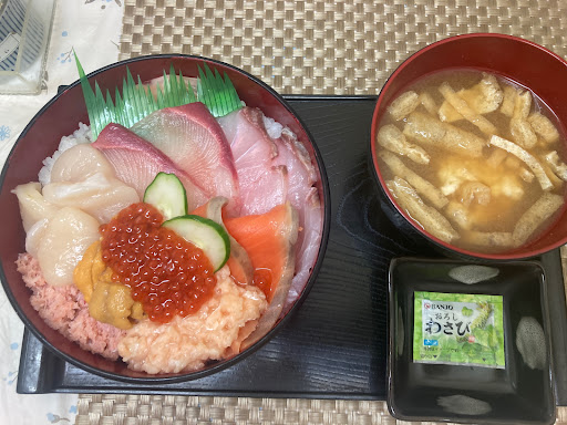 R5/8/24(木)16時半頃に来店しました。 今回、コチラの御近所の方から教えて頂いて初来店。ワンコインで海鮮丼が食べれると聞いて来店したのですが値上がりしたようで、あまりお得感は無かったです。 今回は「うさぎ(まぐろ、サーモン、いか、ネギトロ)」のネタ大盛り、シャリ増しを注文しました。 女性スタッフよりイートインスペースでの食事は+150円でサラダ、小鉢、、漬物、味噌汁が付いてくると聞いて一緒に注文。味噌汁はインスタントをセルフサービスでポットからお湯を入れて食べるスタイルでした。 イートインスペースは簡易的な狭いカウンターで扇風機はありましたが季節的に暑さを我慢しての食事でした。 ネタは新鮮で美味しかったですがコチラには駐車場が無いので近くのコインパーキングを利用すると商品が値上がりした分、割高になった気がします。 コチラのお店を利用する際は路駐で普通盛りのままテイクアウトした方が良さげだと思いました。 ちなみに"海...