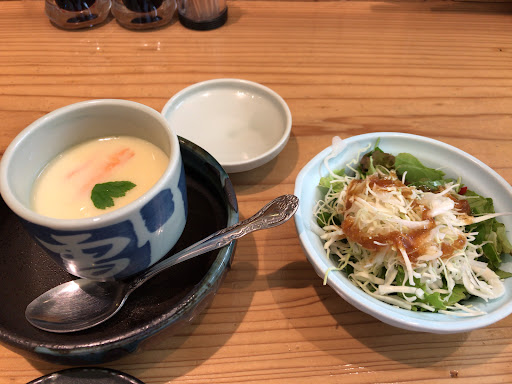 Read more市立病院の近くマックスバリューの隣りです。 寿司定食が寿司10貫で1030円って、あまり期待していませんでしたが、見事に裏切られました!! 誰が見ても丁寧なお仕事だと思うでしょうね😉サラダも茶碗蒸しも赤だしも付いて、このお値段は凄すぎです😲 他にも海鮮丼や焼き魚定食、それにカレーうどんもあって、常連さんらしき方々は席につくやいなや頼まれていましたので、次はコレだなと思いました! メニューを見ていると、大好きなフイッシュ&チップスがあったので、珍しい〜と思いながら(お寿司屋さんで)次は夜ビール飲みながらこれ食べて、シメをカレーうどん...