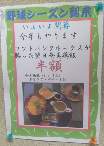 Read more鶏飯を食べたくて行ったら偶然半額の日でビックリでした!美味しかったしお得だし大満足でした♪ ユニフォームも飾ってあったしソフトバンクホークスのファンできっと有名なお店なんでしょうね! スタッフの方も丁寧で明るく、入口でお出迎えしてくれる招き猫ちゃんもお...