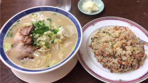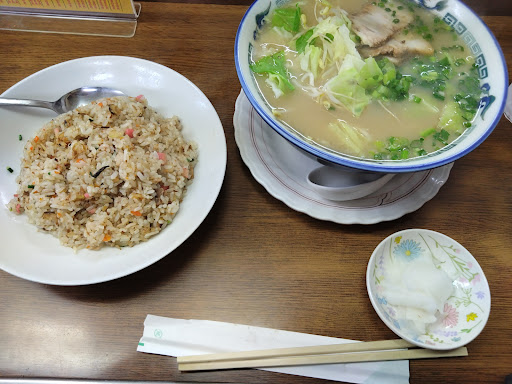 R5/9/16(土)14時過ぎに来店しました。 今回、初来店で「ラーメン(大盛り)」と「焼きめし(大盛り)」を注文しようとしたところお店のオーナーらしき男性から「初めてだったら大盛りは量が多いのでヤメといた方がイイよ」とアドバイスされたので「ラーメン(大盛り)」と「焼きめし(中盛り)」を注文しました。 確かに普通の人であれば中盛りでも充分満足出来る量だと思います。 ラーメンはTHE鹿児島ラーメンという味わいで他のクチコミでも見られるように少し塩分高めだと思いますが美味しかったです。 焼きめしも昔ながらの焼きめしという感じでソースを掛けて食べたくなる焼きめしでした。 次は焼きめし大盛りを食べに行こうと思います。 駐車場は店の前に2台分と店...