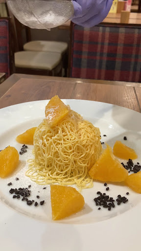2025年2月の夜に伺いました。 20:30終わりの映画を アミュプラザ鹿児島6階のミッテ10で観てから伺いました。 映画の半券提示で10%割引という事もあって、 楽しみにしてました。 アミュプラザ鹿児島の5階に降りるとお客さんまばら… 金曜日の夜なのにって思っちゃいました😅 こちらに入るとお客さんは3人。 入り口横のレジ奥にスマホ📱いじってるスタッフがいました。 至近距離にいる僕を気付いているのに 動く気配さえ全く無い… 奥から女性スタッフが気付いてようやく接客。 そしたら『ご飯が切れてしまって ペンネグラタンとスイーツしか出せない』と言うからビックリ😳 ご飯が切れたなら入り口にでも提示するとか 普通はすると思うんですが… 店に入った手前、出にくいし、 せっかくの映画半券は当日のみ有効だから、 ペンネグラタン食べることにしました。 この判断が間違いでした😓 入り口すぐの席を勧められましたが、 通行人と目が合いそうで嫌と思い、 奥のテーブルで良いか尋ねたら良いと言ってくれて一安心。 お客さんはもう僕だけになったのに 入り口すぐの席を勧めたのは 早く奥から片付けたかったのかなぁ… 持って来たメニューは分厚いのに 僕が選べる料理は ペンネグラタン6種類のみ… ちょっと虚しい。 仕方なくこの中でのおすすめを スタッフさんに聞いて、 『トマトクリームペンネグラタン』と せっかく来たから『みかんモンブラン』も注文。 よくあるあるなんですが、 立派なメニューほど、 メニューに載ってる写真と、 実際に目の前に提供された料理との違いが かなりあってガッカリする事多いです。 『トマトクリームペンネグラタン』来ましたが、 写真とは似つかないチーズの量。 やっぱりガッカリ😮💨 なんか騙された感があるんだよなぁ… 鍋になってるから最後まで冷めずに食べられるのは良いかな。 普通に美味しかったです。 セットでサラダとポテトとスープを付けたのは失敗😞 サラダは業務用のカット野菜の独特の匂いと味がして、 敏感な人は苦手かもしれません。 僕が最後の客だった事もあるのでしょうが、 スープが煮詰まってて塩辛い😩 小さいカップの1/3位しか入ってないし、 カップには普段入れてるであろう所に跡があった。 あれ❓カップを漂白とかしてないの⁉️ 後からふと気付いて衛生的にどうなのって思いました😂 ポテトは普通。 食べてる最中、 目の前でテーブルの片付けをし始める、 最初入り口で無視した店員。 片付けてる最中、 確かに目👀が合ったのに またも無視。 最初の印象で分かってはいたけど、 『すみません』の一言もない… 食べ終わっても一向にスタッフは 全員気付かず閉店作業に没頭。 こんな閉店作業されてたら入りたくないし、 アミュプラザ5階の他の店舗もこんなだったら 夜の8時以降とか来たくないかも😖 仕方なく席を立ち、 レジ付近にいるスタッフさんに声かけて 片付けとスイーツをお願いする始末。 客に気を遣わせる事自体ありえない😱 いざ『みかんモンブラン』を別のスタッフが持って来ました。 言葉尻は丁寧でしたが… モンブランクリームを目の前で絞った演出の後、 凍ったみかんをギザギザの小さなトングで乗せます。 それから粉糖をかけてる最中に 乗っけたみかんが崩れ落ちちゃいました😥 スタッフさん、 クリームの上に乗っけようと試みるも なかなか上手くいかないと思ったのか 『ごゆっくりお召し上がりくださいませ』と いきなり言って去って行きました… 『嘘でしょ、諦めた⁉️』と心の中で思っちゃいました。 一言何か添えて立ち去る訳でもなく、 放置されたスイーツ… ホント、メニューの写真とは似つかない品物に😭 味はみかんの酸味が効いてて、 サッパリとは頂けはしましたが、 気持ちはガッカリの極み😩 お昼などの時間帯だったら まだここまで酷くはないんでしょうが、 改めて接客は大事だと思い知らされた感じでした。 10%割引で2,500円ほどでしたが、 高くついたなぁって思いました。 映画を観て楽しかった気持ちが 一気に崩された感じ😭 食べられなかったドリアは食べてみたいですが、 少なくとももう夜は...