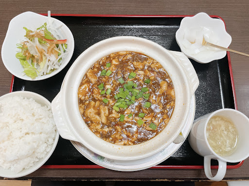 Read moreランチメニューの麻婆豆腐を注文。熱い土鍋に入った麻婆豆腐、ごはん、卵スープ、大根サラダ、杏仁豆腐がでてきた。麻婆豆腐の量は多め。やや濃いめの味だが油っぽくなく、豆鼓醤の旨味と甜麺醤のような甘味がある、その後辛みが来る感じ。辛めだが甘味と旨味もあるので食べやすいと思う。ただ汗はかく。しびれはあまり無いと思う。肉もやや固めで味しっかりついててうまい。全体的に辛いがそれだけでなくとてもおいしかった。最後らへんで麻婆豆腐をごはんにかけると、旨味がごはんに染み込んでめちゃくちゃうまい。大根サラダはシャキシャキしててうまい。卵スープはとろみがついた一般的な中華スープ。杏仁豆腐はやや少なめか。食後、サービスでコーヒーがでてきた。普通のコーヒーだが気持ちが嬉しい。でも熱いの...