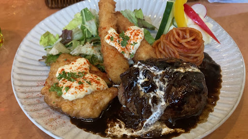 他に客がおらず、私は大人のお子様ランチを注文。妻は山下食堂ランチのチキン南蛮を注文。 大人のお子様ランチのハンバーグが焦げたとの事で注文してからお料理が出てくるまでに52分間かかりました。(妻は40分)。 我々の後に常連さんらしき方がいらして同じものを注文されていましたが、常連さんの方に先に料理が提供されており、少し不審に思いました。常連さんとのおしゃべりに夢中でハンバーグを焦がしたのでは無いかと、余計な疑いを持ってしまいました。 ハンバーグは中に赤い肉が残っており不安だったので中心部は食べるのを辞めました。 タイムラグが生まれたせいかエビフライも冷めていたのが残念でしたが、どの品も味はとても良く、味はとても満足できました。 味は絶品で、手間を掛けているのか時間がかかるのは仕方ないとはいえ、なんだかもう少し上手い事できたら良いのにと余計な事を思わざるを得ませんでした。 時間がかかったお詫びに妻のランチにデザートを頂きましたので感謝しています。アイスに掛かっている甘いソースも絶品でした。 時間に余裕がある方や、長いランチタイムを過ごしたい方、既に常連さんの方には...