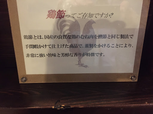 Original ramen in the soup made from dried chicken flakes. Some Yuzu( kind of citrus)peel for flavour is added. Quite savoury taste. If not the best but memorable one among many ramens of the Kagoshima. worth a visit. The bistro is quite tiny, maybe full with 10 people, and located at the corner. Thus easy to overlook...