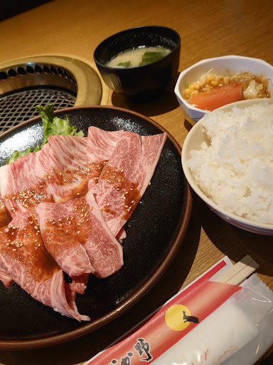 焼きシャブランチ 2100円を頂きました。 このお店のSNSを見て行きました。 1700円のA上ランチを食べに来ましたが、 何年前のSNSなのか、更新してください! かなりメニュー変わっていて、値上がりも凄く上がっていました。Aランチが1700円から2550円になっていました、ちょっとびっくりしました。 なので食べたいのが、焼きシャブだったので焼きシャブランチにしました。 けっこう薄めのカルビが2種類3枚と4枚焼いてそのまま食べたら柔らかくほどける食感で、タレは甘辛くちょっと酸味が効いたタレで、ちょっと飽きます、塩と、醤油系のあっさりした物が欲しかったです、ご飯大盛りで頼みました、けっこうツヤツヤでふわふわした粒が大きめのご飯美味しかったです、味噌汁も何か昔懐かしい味でし...