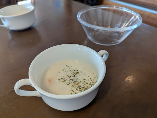 Read moreランチの種類がたくさんあります。 牛フィレステーキランチ🥩を注文しました。その間に、お水とドリアはセルフでいただきますが、熱々ドリアに もやしが入っていて、意外にあっさりしています。次に、前菜サラダ盛り合わせは、サラダに生ハムがのっていて カナッペやハムにポテサラが挟んであったり、キビナゴのオイル漬け、スライストマトにチーズがのせてあり、キッシュと6種類の味が楽しめて満足です。 そして、メインの和風牛フィレステーキが熱々の鉄板に乗って出てきます。柔らかくて、おろしソースをかけていただき、美味しいでした。 最後の自家焙煎珈琲がとても美味しいでした。 BGMも流れているので、ゆっくりし...