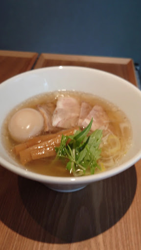 2024年10月に伺いました。 日曜日の午後3時過ぎにたまたま通りかかり、この時間でも『営業中』とあったので入ってみました。 まだ開店間もないお店だから綺麗。 ラーメンは1種類のみでサイズが大か小。 とりあえず小を券売機で購入。 カウンター席のみの店内でスタッフさんに食券渡しました。 いざ来たラーメンの綺麗な事😍 スープが透き通ってます。 そしたら『このラーメンには柚子胡椒とニンニク合います』と 柚子胡椒とすりおろしニンニクを側に置いてくださいました💕 綺麗なラーメン、 無意識に箸が伸びて🥢 て一口食べてしまいました😅 写真載せてますが、 一口食べてしまいましたので すみません🙇 小サイズを頼んだのに想像以上にデカい。 普通のラーメン店なら並サイズだと思います😂 とにかくスープが美味しい❣️ しょうゆとしおを足して2で割ったような感じですねと お店の方にお伝えすると『両方使ってます』とニコリ😊笑顔で話されました。 更に衝撃的だったのが 透明なので鶏がらスープと 思い込んでましたが、 スッキリなのにコクがあって旨味が奥深い理由… 鶏がらと豚骨のハイブリッドで、 しかも豚骨の方が比率は高いと聞いてビックリ‼️😱 こんな透き通っているのに❤️❤️❤️ 飲みやすいあっさりスープは 中太ストレート麺にしっかり絡み、 旨味からの喉越しの良さも たまらなく良い🤤 鶏がらスープも入っているから柚子胡椒も合うし、 豚骨スープだからこそすりおろしニンニク相性抜群👍 胡椒効かすと味が更に引き締まります。 しかも『焼き鳥 行雲』さんが考案したラーメンらしく、 だからここのお店にも『雲』が付いているんですね🤔 メンマ、水菜、長ネギの食感も良く、 スープは飲み干してしまいました。 今度は大サイズで煮卵...