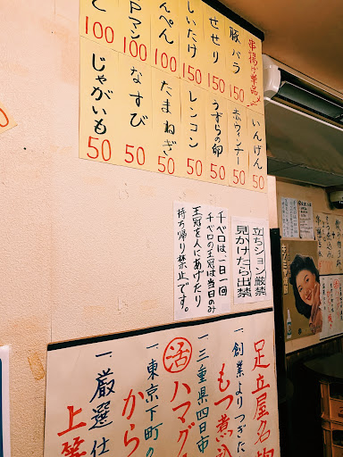 Read moreここは、おもしろい! おいしくて、周りの人(初対面の人)と話も自然とできてせんべろ。 最初はオシボリも自分で取る(入口横)、その前に入口に悩むなどあるけれど、昭和の雰囲気そのままに美味しく平成も混じり。今後新しい時代も作っていく店だと思う。 【コー乳ハイ】を「こーちちはい?」と聞いたけどご愛嬌(笑)「こーにゅうはい」が正解。 コーヒー牛乳ハイの略だった(笑) せんべろは3杯+おかず(串揚げ五本・もつ煮込みなどから選べる)なんだけど、とりあえず串揚げと単品もつ煮込みをオススメする。 会計の仕方は升にせんべろなら千円入れたらおかわりのコイン代わりのビールの栓を入れてくれて、単品頼んだらその分お金を入れたら物々交換みたいなかんじ。 最初は戸惑うかもだけど周りの方が(常連さん)が教えてくれるし、店の方も丁寧に教えてくれる。 ここは、せんべろ元祖。 兎に角行くべき。ってか絶対行ってみて。 マジウマ・雰囲気よし・常連さんも楽しく話でき・店員さんも優しい。 しーかーもー昼の12:00から開いてるなんてイキじゃない?(笑) 飲んで食べて知らない人と会話して。楽しくおいしい時間を過ごせました! コー乳ハイは、地味にオススメ(笑)(゚д゚)ウマー もつ煮込みと生フライドポテトは...