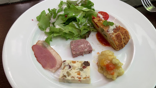 This review is for both the rooms and the restaurant. As for the rooms, the accommodations were nice. I found it on air b n b. The hosts were accommodating and sweet. The room that we got was a studio with two beds and small kitchen. There was also a patio with a clothes washer. The doors are locked with an electric key pad. You have to wear inside shoes to go up the floors which makes sense as everything is carpet.