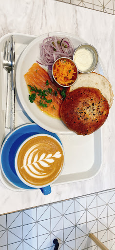 The atmosphere is just OK. The entrance was confusing to us as there is a desk on the opposite side of the cafe counter for some kind of salon that I think must be on the 2F. It's mostly just clean white inside and tables and chairs are just standard so the decor is a bit stark. The kitchen space is nice and open but if you want to sit down while they prepare your drink and food, you can't see the kitchen anyway because the customer seating is around a corner in the back. So overall,...