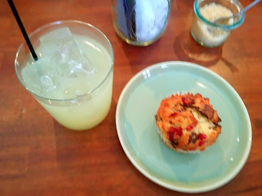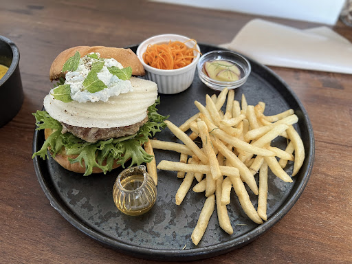 店内はオシャレな雰囲気 金曜12時ごろ訪問したが店員さんは1人おり、 調理中で次々タルトなど料理を仕上げていた ハシゴを登ったり、オーブンを開けたりトントントン・バタンと賑やかである 2階の美容室からの音もそれなりに聞こえた 複数人でおしゃべりをするのに入店したので気にならなかったが、1人でゆっくり利用するのには向かないかな。と思った カウンターで注文し、席に着くと店員さんがドリンク・フードを運んでくれる 席は6人がけのテーブルが2卓と、レジカウンター並びのカウンター席がある