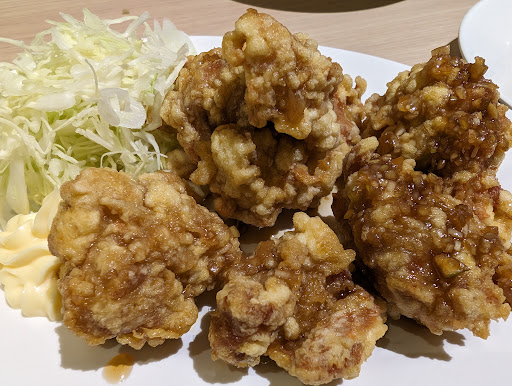 Read more日曜日の19時頃でした。油淋鶏、豚骨ラーメン、餃子2人前、ヤキメシを頂きました。どれも美味しかったです。ヤキメシにはスープも付いており、このスープも美味しかったです。 提供までには少し時間がかかります。テーブルに置いてあるラー油などは触るときに気を付けてください。今回利用したテーブルのラー油瓶は油がすごかったです。 ホールの店員さんの慌ただしさが少し気になりました。テーブル清掃中に水をこぼしたり、追加注文時に回収した伝票が別テーブルに置かれていたりなど...