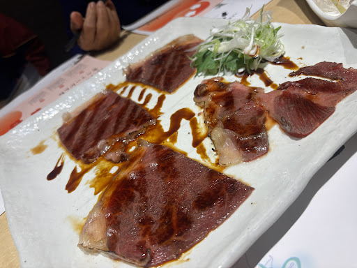 Bon, je ne sais pas trop par où commencer mais… restaurant superbe, avec une devanture attirant la curiosité ! J’ai vu juste puisque c’était tout simplement exquis ! Le personnel est vraiment sympathique et à l’écoute. Les plats sont servis rapidement, on a même eu droit à une entrée offerte, avec un p’tit show de grillade de viande en direct ! Les tables sont typiques du Japon, on est assis à même le sol, et tout est moderne, joli. Le repas a lieu dans une pièce séparée, on se sent bien, et la décoration est originale !