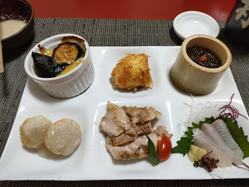 My mother-in-law recommended this place, and it did not disappoint. We had a five course meal, which consisted of a salad, a tray of assorted appetizers, a soup, a main course of sushi, and matcha ice-cream for dessert. Everything was amazingly delicious. We ate in a Japanese style room, which was very private. There is also counter seating available. The parking lot was a little hard to enter due to construction, but Google guided us...