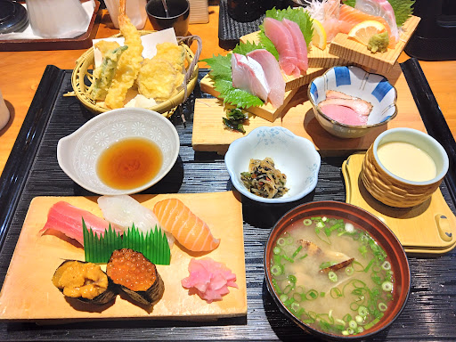 お料理もお刺身やお寿司など新鮮で盛り付けも綺麗です。 茶碗蒸しの味もとてもおいしい! アサリの味噌汁も大粒で食べ応えあり! 卓上の醤油も鹿児島の甘い刺身醤油からベーシックな甘くない醤油と2種類あります