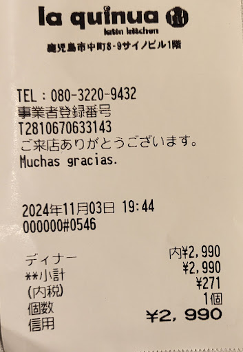 La Quinua Je me réjouissais de manger mexicain ! Je passer vers 2 heures c'était fermé! Je décidé de repasser à 17h30 leurs ouverture le soir ! Je était le premier à arriver est le dernier à partir !!! Au total il y avait 5 tables à servir !! Je commande : burrito ¥ 1,050 avec" Kurobuta Pork is a fine texfured, tender and clean-tasting fat, highly nufritious meat considered a brand name for pork unique to Kagoshima"rri Ca était ma surprise totale ! Ilsles bu y'a vais becoupe du quinoa !! La viande il y avait environ 4 petits morceaux est je de doute de quelle porc en parle ! J'adore les burrito! Je manger au moins des centaines au Mexique avec pleins des viande! Me je jamais mangé des burrito végétariens avec pleins de Quinoa !! Le plat n'est pas bon ! A améliorer ! les piment verts jalapeños que je commande n'était pas bon ! Les jalapeños que moi je mange sont becoupe plus ferme croustillante et piquants ! Il faut pas couper les piment ! Il faut les laisser entier! On les coupent ils perdent leurs arômes et leurs effets croustillante ! La Quinua Je me réjouissais de manger mexicain ! Je passer vers 2 heures c'était fermé! Je décidé de repasser à 17h30 leurs ouverture le soir ! Je était le premier à arriver est le dernier à partir !!! Au total il y avait 5 tables à servir !! Je commande : burrito ¥ 1,050 avec" Kurobuta Pork is a fine texfured, tender and clean-tasting fat, highly nufritious meat considered a brand name for pork unique to Kagoshima"rri Ca était ma surprise totale ! Ilsles bu y'a vais becoupe du quinoa !! La viande il y avait environ 4 petits morceaux est je de doute de quelle porc en parle ! J'adore les burrito! Je manger au moins des centaines au Mexique avec pleins des viande! Me je jamais mangé des burrito végétariens avec pleins de Quinoa !! Le plat n'est pas bon ! A améliorer ! les piment verts jalapeños que je commande n'était pas bon ! Les jalapeños que moi je mange sont becoupe plus ferme croustillante et piquants ! Il faut pas couper les piment ! Il faut les laisser entier! On les coupent ils perdent leurs arômes et leurs effets croustillante ! tequenos peruanos "Peruvian style spring rols filled with ham and cheese topped with huancaina, cheese and yellow pepper, sauce " était grilles fade et sans goût ! Et la sauce mauvais ! au même moment je commander quesadilla " One of Mexican food favorites. Grilled tortilla filled with cheese and the topping of your choosing. If you are a cheese lover, this is the dish for you " que est jamais arrivé !! Je attendais pendant 20 minutes tout les clients sont déjà partis ! Et la je décide de payer et partir ! A c'est moment le serveur est venu avec les tequenos peruanos ! Pas bon du tout ! Je conseille au propriétaire de acheter un livre de cuisine mexicain et péruvien et donne au chef de cuisine ( je ne c'est pas si il y'a un) cadeaux pour qui travaille le menu et les plats ! Les texte font envie ! Mais la réalité est très loin du texte ! A déconseillé fortement dans l'état actuelle...