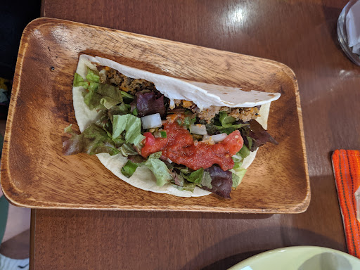 We we're stopping at kagoshima for a day and stopped by here for lunch. Its located in a pretty accessible location near the shopping street, close by the ports. It is not a vegan restaurant but had about 4 vegetarian options, some of them which could be made vegan! I had the taco bowl and it was pretty good! However it felt a bit lacking in terms of the amount of food, possibly because it was made vegan and things were not included. I think adding some beans to the sauce would make it much better and filling. However I must say their vegan dessert was quite delicious and totally made the meal! I was very happy to see the owners put the effort to make the restaurant vegn friendly, and the staff was very accommodating and decently knowledgable about vegn dietary restrictions!