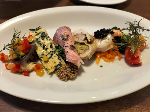 2025年5月に伺いました。 たまたま散歩中通りかかり、 中がとても賑やかだったので絶対美味しいんだろうなぁと思い、 ホットペッパーグルメから予約して伺いました。 予定より早く着いてしまいました。 店内で待たせてもらえないかお願いしたところ、 ご主人は快くOKしてくれました。 外は雨☂️だったのでありがたかったです🙏 店内は清潔感あります。 仔豚の置き物がいっぱいあり、 イタリア🇮🇹では幸せのシンボルなんだそうで、 こちらまで幸せな気持ちになりますね😄 黒板にはアラカルトメニューが色々載ってて、 メニューも飲み物も含め豊富。 通年で生でも食べられちゃう唯一の国産サーモンの『鳥取サーモン』と『イサキ』のマリネ。 『鳥取サーモン』は 初めて頂きましたが、 クセが無くて美味しかったです😊 『イサキ』はこれから旬。 あっさりとした気品ある味わいです。 『自家製オムレツ』 中のお野菜のシャキシャキ感を残しつつ、 卵の風味と濃すぎない絶妙な味付けが良い👍 『ローストポーク』は低音調理されているから、 見た目のピンクでも全然大丈夫。 ジューシーな味わい💕 添えてあるマスタードの酢漬けのプチプチ食感がたまらなく良いんです😄 『鶏肉の野菜巻き』 鶏肉の旨味がしっかり味わえて、 あっさりなのに満足感あります。 『人参のラペ』 お店の特徴が出るラペ。 滑らかな食感と フルーティーな味わいは 爽快感あって前菜食べてるって感じします❤️ 『水茄子』 生でした😳 まるで果物の様な茄子🍆 こういった変化球あると 料理も印象に残って、 素敵ですよね💓 スープはコンソメベースかな? 野菜の旨味も溶け込んで美味しい😊 『イカ🦑、大名筍、アスパラソバージュのオイルベースパスタ』 生でも食べられる大名筍、 旬が短いので珍しい食材💕 濃厚な味わいでシャキシャキ食感。 今が旬の珍しい『大名筍』がまさかこちらで頂けるなんて…幸せ😍 更に珍しい😱 アスパラソバージュ⁉️ 初めて食べました。 旬が2週間ほどしかない 貴重な食材が 大名筍と共に パスタの中に❣️ 見た目は緑色のつくしの様な感じです。 粘りのある食感とパスタと滑らかなオイルの絡み具合が ちゃんと計算されているのがわかる、 完成度が高いパスタ、絶品😋 『イサキのアクアパッツァ』 今が旬のイサキ。 脂が乗っていて、 まさに『梅雨イサキ』❤️ そこにムール貝やアサリ、 野菜もズッキーニなど入って、 魚介の旨味の塊の様なスープはほっぺが落ちる美味しさ🤤 白ワインが欲しくなります💕 『鹿児島県産黒毛和牛のビステッカ』 黒胡椒のシンプルな味だからこそ、 黒毛和牛の美味しさが際立ちます❗️ もっと脂っこいイメージがありましたが、 見た目から綺麗な赤身で 焼き加減も素晴らしい😍 赤ワイン🍷を注ぐと旨味の幅が更に広がって 噛んでいる間は至福のひと時でした😋 『ガトーショコラ』『バニラアイス』 甘くないガトーショコラに、 市販のアイスでは出せない滑らかな口当たりが 相性抜群でした。 『コーヒー』『エスプレッソ』 普通は逆だと思いますが、 こちらはコーヒーの方が 以外と苦めで、 エスプレッソの方が柔らかい口当たりでした。 個人的にはエスプレッソの方が好きかなぁ☺️ 接客は素晴らしく、 料理を丁寧に説明してくださり、 ワインでの質問にも 笑顔で対応してくれました🥰 アラカルトで頼むより 断然コースがお得感ありますよ🉐 大満足のデ...