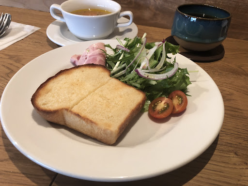 以前から行ってみたかったモーニングを先日利用する機会が出来たので早速行ってきました!土曜日の朝でしたが入れ代わり立ち代わり沢山のお客さんが来られていたので、2人以上で行くのであれば早い時間帯か遅い時間帯にされると良いかと思います。 私は1人、カウンター席だったので利用しやすかったです。 モーニングメニューは7時~10時までされていて、モーニングプレートが600円。それに+100円でスープも付けれました。 それとは別にチーズトースト、シュガーバタートースト、サンドイッチもあったので色々楽しめるかと思います。 この日はモーニングプレートとスープにドリンクはコーヒーを頂きました。ハムが大変美味しく、サンドイッチにふくどめ小牧場さんのハム使用とされていたので、このハムもそうなのかなー。あともう1枚ぐらい食べたかったですねー(笑) そして甘くて美味しいトーストが最高でした。 ゆっくりと過ごさせて頂いて良いリフレッシュが出来ました。 また利用さ...