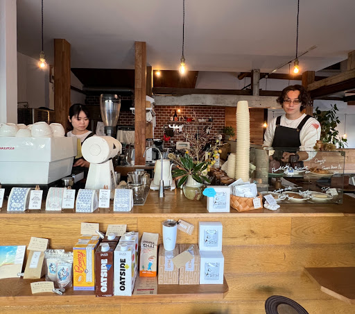 Really cool and well-designed shop, so I was nervous as my husband and I walked in with our fussy two-year-old daughter and a lot of luggage (we were traveling from out of town). But the staff was so warm and friendly, and the atmosphere was welcoming and spacious. We each had coffee, and I had the peanut butter cookie which was delicious and not too sweet. My husband had the focaccia sandwich, which was also very good. It’s obvious the ingredients are high-quality. The coffee was so delicious!! We tried Ethiopia and Costa Rica, which were both very good. Clean and delicate. They were so good that I bought some beans to take home. As I was paying for the beans I noticed some fresh-baked canele had just been added to the display, so I had to try that as well. I’m very particular when it comes to canele, and I can confidently say this was the best canele I’ve ever had. The texture was absolutely perfect and so authentic. All in all it was a very positive experience and a great way to start our day....