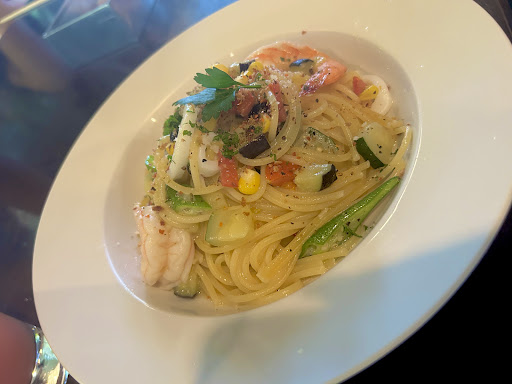 2025年4月のお昼、 予約出来ないので早めに並んで待ちました😉 11:30開店だったので、11:00に着いたらもう並んでる😅 これだけ人気なら期待が膨らみます💓 素敵な庭を抜けお店に入ると 美味しそうなケーキ🍰がホールで 冷蔵ショーケースの中に 幾つも見えて、 カットされて断面も見えて、 めっちゃ美味しそう🤤 店内は広々としてて、 間取りも贅沢な感じ。 メニューは店員さんが ボートを持って来てくださいます。 ちょっとメニュー数は少ないかなぁ。 パスタ🍝を大盛りで2種注文。 2人だったのでシェアしました。 セットのドリンクはコーヒー☕️をチョイス。 スープは僕にはちょっと少ない感じで 濃いめの味でした😅 味は美味しかったです。 サラダ🥗は小さい器にこんもりと 乗っけてます。 なので食べ難かったですね😂 『釜揚げしらす、水イカ🦑、そら豆、フレッシュ🍅トマトのペペロンチーノ』 パスタの大盛り、結構な量で大満足❤️ 使用している油の質が高いのがよ〜くわかります💕 食感のアルデンテもナイス👍 色彩豊かで映えます😍 『揚げなす🍆と粗挽肉、バジリコのボロネーゼ』 バジリコのパスタは好きで良く食べますが、 バジリコペーストをボロネーゼの味変に使うなんて面白い😆 口を飽きさせないから楽しい🎵 ナス🍆ってホント油と相性良いので、 粗挽肉の脂、旨味も吸ってます😄 パスタとの絡み具合もめっちゃ良い❣️ コーヒー☕️(HOT)は『グアテマラ🇬🇹』で、 ICEはまた別の豆を使ってました。 見た目からかなりの濃さが感じ取れる色合い。 この贅沢な濃さがガツンと舌に響きます🥰 ミルクはよくあるフレッシュではなくて、 ちゃんとミルク。 濃いめのコーヒーだからこそ、 ミルクと合いますね😌 デザートは『ガトークラシック』 ボリューム感あります。 一口目からもう満足😆 チョコレートが高騰している中、 贅沢に使っているのがわかるチョコ感ヤバ😱 乗せてあるクリームも滑らかな口当たり。 濃くてしっとりな食感は素晴らしい。 パスタ、デザート、 とっ...