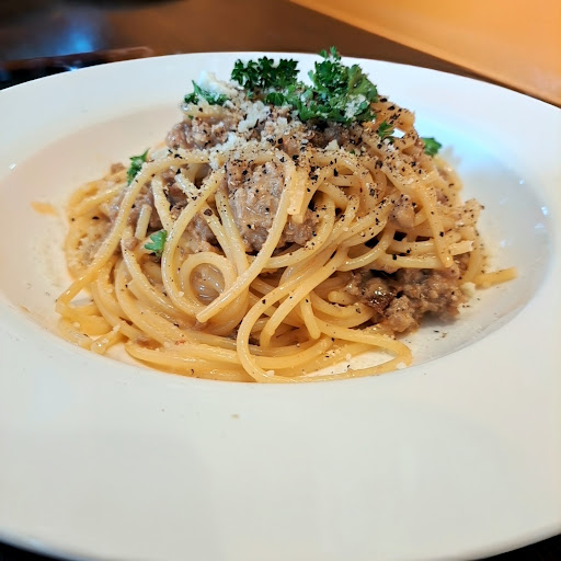 シェアで頂いたパスタも加減の良いアルデンテで、ベーコン・チーズのトマトソースパスタは、トマトの甘さと酸味に食感、ベーコンの薫りと脂と食感が想像を裏切らない美味しさで、あさりとジャガイモのグリーンソースにはオリーブオイルとバジルが「これでもか」と言わんばかりに入っていました(笑) これもまた、アサリの出汁が良い仕事をしており、美味しかったです。 伊勢海老のトマトクリームソースは、¥1100Upのお値段でしたが○○○○でした。不味い訳が無い!(笑) 是非、召し上がってみて下さい。