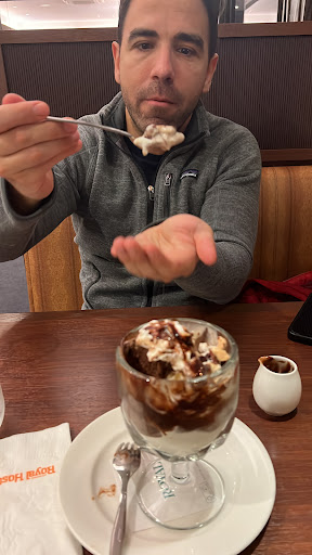 I went to Kagoshima for work and ended up spending my birthday there. As it got late, we chose Royal Host because it's one of the few Western restaurants that stays open so late. Honestly, the food was good; we ordered meat with various sides and a meat stir-fry as well. For dessert, a mix of ice cream with cream and cookies, which, despite not being visually presented in the best way, tasted phenomenal. In a pinch, the place is ideal—open late, clean, with good service, and the food is honestly good, though nothing extraordinary. The ambiance is basic, resembling a Denny's. Considering the price-quality ratio, it's...