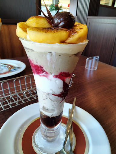 2023年9月にまた行きました。 いつかはと毎年思っていた栗のデザート(日替わりランチよりお値段がします)を、「いつかは来ない」と思い切って注文しました。ブリュレの表面が柿で、掘り進んでいくほどに味と食感の違う嬉しい発見が続々。食後で入らないかもなどという心配は無用でした。 ワンシーズンに一度は食べておきたいマストデザートです。 コーヒーマシンが新しくなって使いやすい反面、ロイホの特製ドリップコーヒーがなくなったのは少し残念です。