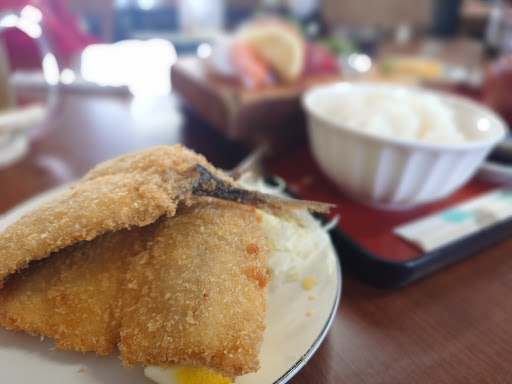 ② Food Review ◎ Shinko Teishoku Set Meal 3000 yen A set menu featuring freshly caught fish from the fish market. Combines fried horse mackerel, assorted sashimi, and clam miso soup for a hearty meal. The exceptionally fresh fried horse mackerel is juicy, coated in a light batter, and has an irresistible texture. The assorted sashimi platter includes tuna, yellowtail, sea bream, silverside, squid, and salmon – packed with fresh fish. A set meal unique to the...