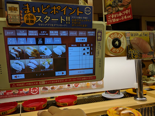 It was a very nice experience! It's a popular conveyor belt sushi chain, and this was my first visit! The service was very nice. We didn't interact with the staff very much, even when it was time to pay our bill. A nice self-checkout kiosk was available, so we used it to pay. Our Japanese is somewhat limited, so this was a convenient option for foreigners or shy people. The food was decently good. We really enjoyed the menu items we ordered, but we thought that the menu was somewhat limited compared to some other conveyor belt sushi chains. There were many items to choose from, just not as many as we were expecting. Orders arrived at your table via a color system. If your table color was pink, then your orders would arrive on link trays. This was to hopefully keep people from taking from your order as it arrived at your table via the slow conveyor belt. All that said, it was a great visit and I would absolutely visit again. I think this is a pretty cool sushi chain, and I love the conveyor belt gimmick. I would recommend it to my friends and family, and hopefully I can bring some of my own...