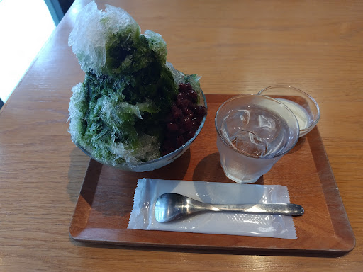 Read more2人で訪問し、かき氷と温かいお茶が欲しいとレジでお願いしました。 するとかき氷と緑茶のセットだとお安いですよと言われたので、それでオーダーしました。