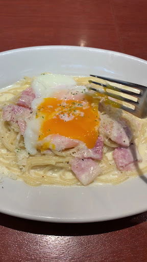 今回初めて妻と二人で食べに行きました。知り合いの話から多少の期待をしておりましたが、その期待は見事に裏切られました。注文したのは、メインパスタにランチセット(スープ・サラダ・コーヒーの付いた)を付けたものだった。最初に配膳されたのは、グリンリーフ99%のサラダ‼️ドレッシングも少なく水みずしさもなく、ウサギの餌かと思わせる感じ。ずいぶんしてからスープが配膳され、スープも、飲み終わっているのにメインパスタはまだまだ来ない。