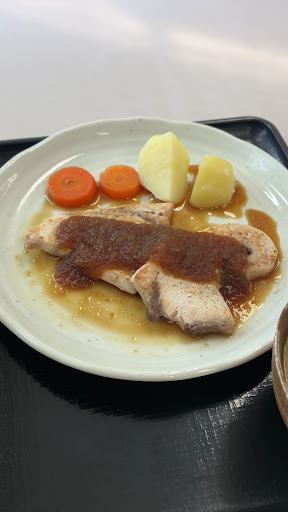 谷山港に勤める方の食堂ですが、一般の方も食事が可能です。 店内は、まさに食堂という雰囲気で、お昼時は港湾で働く方や地元の方で賑わっていました。メニューにはお子さまメニューもあり、ファミリーでの利用も問題無さそうです。 本日おすすめの豚ステーキとアジフライ定食を注文しましたが家庭的な味付けでおいしかったです。(ご飯・お味噌汁はおかわりできます。) デザート付きでコーヒー(セルフ)...
