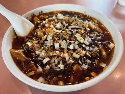Read more河北町は蕎麦屋がおおいですが、ラーメンが食べたくなり、探したらここがヒットしました。 開店と同時に行ったので、もちろん客は居らず、 他のクチコミ通り、昔からあるお店なんだろうなと感じましたが、 古いけど、ちゃんと綺麗にされていました。 中華料理のメニューがあり、 ラーメンの種類も多く、 私は四川麻婆ラーメン、連れは海老ラーメン、酸辣湯麺頼みました。 海老ラーメン美味しかったです! 四川麻婆は、豆腐が塩っぱめだけど、クセになる、酸辣湯麺は、今まで食べたことない味で、丼の底まで餡があり、甘めの酢ベースなのかな?私は追酢したくなりましたが、好きな人はハマりそう。 餃子も頼みました。 自家製なんでしょうけど、具が...