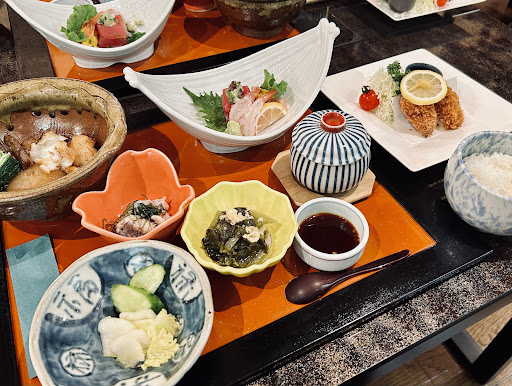 ランチにてお邪魔しました。ひっそり物静かな佇まいをくぐると、ギャップ萌えの蔵空間が広がります。 セルフのお茶を啜りつつ、2750円と少し高めですが、熊野茶屋膳を注文。季節で変わるのか、セットになっている揚げたての牡蠣フライは、サクッとミルキーで牡蠣の甘みが広がり大変美味しい。刺盛りはサーモンの炙り、プリッとしたエビ、臭みのない分厚いぶつ切りのマグロが美しく盛られ、新鮮さが伝わります。 特に美味しかったのは、仕事が伝わる煮魚です。 コクのある甘じょっぱい汁で、脂の乗った白身魚と根菜を合わせてこっくりと煮込まれ、山椒がふわりと香って大変美味しい。少し味が濃いめなので、ご飯が進みます。 火の入れ方がベストなエビが入った、普通より優しい口当たりでミルキーな茶碗蒸しも、熱々で提供されます。 他の小鉢も、酢漬けの白身、青菜炒め、白菜の漬物があり、どれもあっさりとした酸味、塩味で食べやすかったです。ご飯の炊き方も私好みでした。 蔵の中で谷地の雛人形を観ながら、食べる御膳は良いランチとなりました。 シンプルに煮魚定食もあったので、今度はそちらを注文しようかなと思います。ただ、ご飯が進むので、男子諸君にはご...