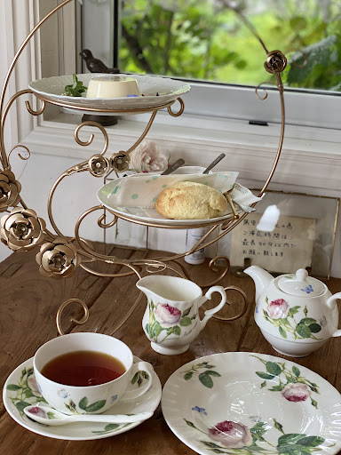 Read more住宅街にひっそりとあるお店。 庭先の駐車場は2~3台分だけですが、ステキなお庭と玄関を潜ると…何と❗元気な室内犬のコーギーちゃんがお出迎え🐕️✨(お客さんを嬉しくて嬉しくてつい吠えちゃいます😁ワンちゃん苦手な方はご留意ください) お店の雰囲気は、ため息の出るような最高のナチュラルインテリアに包まれた、雑誌から飛び出した様な別世界✨ そんな雰囲気の中でいただくアフタヌーンティーのメニューをチョイス☕ 果実のジャムと手作りと思われるバターが添えられたスコーンは、これまで食べたどのスコーンよりも美味しく💕 バラ模様のティーポットから注ぐ紅茶は、渋みのないスッキリした味わい✨(3杯分くらいあります) ステキな店主の方との会話も弾み、椅子の側でコテンと寛ぐワンちゃんの可愛さも相まって、ずっとそこで一日を過ごしたくなる最高のカフェです❗✨ (なお、写真は了解...