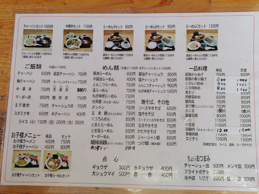 Read more平日の昼間に訪問。開店直後でしたが、既に地元の人らしき人が1人いました。メニューが豊富で迷いましたが、ら〜めんCセットでタンメン(+100円)を注文。ラーメン・チャーハン・ギョウザのセットでこの値段なら、コスパは良いですね。タンメンは野菜がたっぷり入っていて塩味も丁度よくて旨い。チャーハンは程よくぱらぱらでこれまた旨い。ギョウザも美味しかったので、ざっくり言うと"全てがちゃんとしてる"とい...