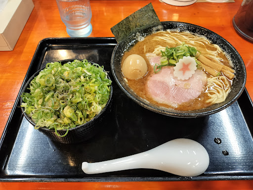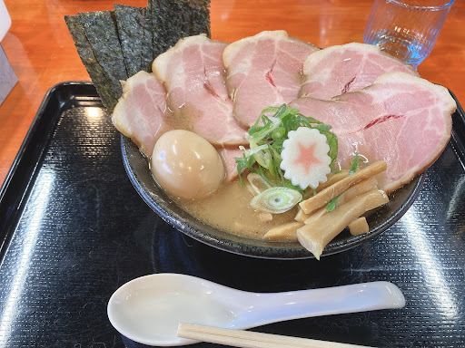 中央道双葉SAから程近い BOOKOFFの南側の 集合テナントの一画に有ります。 南アルプス市の本家の2号店ですかね。 駐車場も他店と供用ですが広さも充分。 店内は明るい雰囲気で テレビも複数台有ります。 他にも、小さなクレーンゲームや はたまた自転車やバイクまで! オーナーさんの趣味なのか とても楽しい空間になってます。 注文は券売機で行います。 基本は濃厚魚介豚骨と、あっさり醤油。 それぞれラーメンとつけめんが有ります。 その他、担担麺、ごはん物、一品料理。 初回は濃🉐魚介豚骨ラーメン! あと、豊洲丼!麺もごはんも大盛無料! 食いしん坊には、もってこいです! 「🉐」は最初から各種トッピング、 チャーシュー増量や味玉等が乗ってます。 更に「肉まし」+「どっさり九条ねぎ」! 追加トッピングして、合計9枚の チャーシューと山盛りの九条ねぎは、 まさに壮観!更に生卵も無料! サービス満点で思わず笑顔になります! 他にも手の平位の大きさの 「ど・デカ唐あげ」や 海鮮の「豊洲丼」(サイズ複数有り)等、 魅力的な品揃えです! 開店当時は厳しい意見も有った様ですが とても美味しく頂きました! 周辺には飲食店の多いエリアですが 末永く続けて欲しい名店でした!