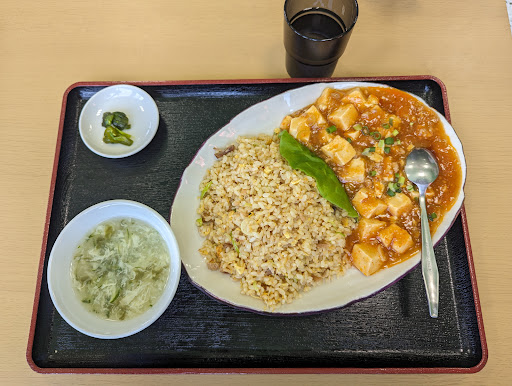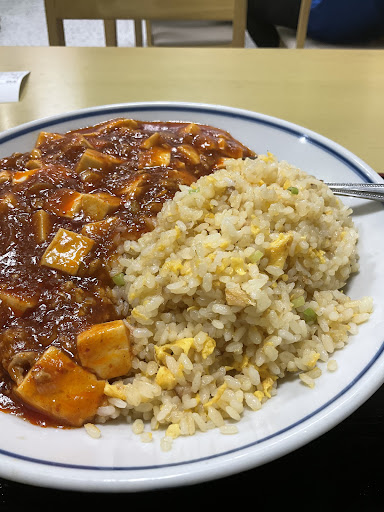 Read more隣のローソンに入ろうと思った時に目に入り、ちょうどお腹も空いてたので入ることにした。口コミにつられて麻婆豆腐炒飯を注文。麻婆豆腐が想像していたより辛くなく味もほど良い感じだった。もうちょっと山椒が効いてても良かったかも。炒飯は可もなく不可もなくって感じ。合わせて値段なりに美味しい。でもここの驚くのはその量!普通盛りなのに大盛りかと思うような量(画像では伝わりづらい)で食べ切るのに苦労した。なのでトータルするとかなり良い店だと思う。 店内の装飾などが一切なくいたって普通の食堂な感じなので雰囲気...