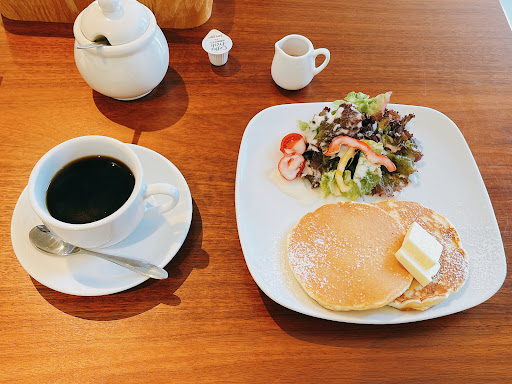 モーニングタイムは11:00までとなっていて、モーニング トーストSet、モーニング パンケーキSet 各税込600円があり、パンケーキSetは+税込150円でベーコン・たまご・チーズのトッピングが可能、