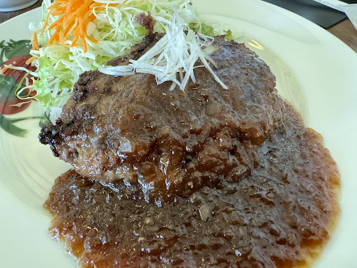 I tried two dishes: the “Homemade Hamburg Mon Style” and the “Omi Beef (Wagyu) 100% Hamburg.” The “Homemade Hamburg Mon Style” was perfectly grilled with a crispy outside and juicy inside. The rich demi-glace sauce added a deep flavor, making every bite a delight. The fresh vegetables on the side, especially the handmade salad dressing, were a perfect complement.