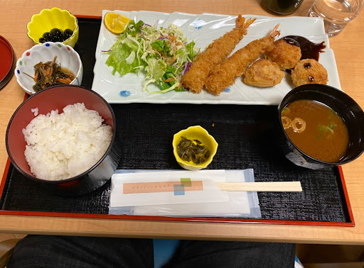入浴後に7名で利用しました。 1480円の海老フライと味噌ヒレカツ定食を注文しましたが、30分以上かなり待たされた上に、内容というかボリュームにガッカリ。