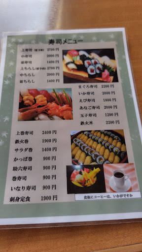 養老鉄道・美濃松山駅前の お食事処 名前こそ お寿司屋さん ですが、喫茶・甘味 から、各種定食、カレー や 焼きそば・スパゲティー まで、幅広く食事が出来る、ファミリーレストラン的なお店 です 仕出しのお料理 や 宴会 などの ご利用 も もちろん、お店の奥には “寿司コーナー” が あります