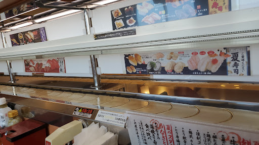 昔ながらの回るレーン。注文した寿司も回って来るものをキャッチ、もしキャッチし損ねるともう一周回って来るのを待つやつ、色の区別等もないため自分が注文したものが到着したのか分かりづらい。 最近後発の競合チェーンは、ベルトコンベア式か列車式の2段か3段で注文した寿司の到着がどの客席にもスムーズ。回ってない分、時短にもなり衛生面の懸念も緩和されている。 そんな時代になった回転寿司。