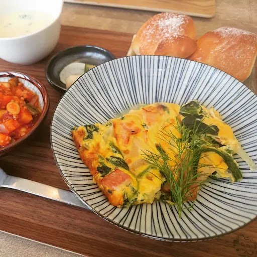 オシャレなカフェ。 駐車場、少そう。 2台くらいかな? 福祉施設と併設ぽい。 入り口においしそうなパンも置いてて中に通されると、こりゃ、おっさん同士では辛そうな内装😂 おされさーん。 管理栄養士による700キロカロリー前後のランチが日替わりで頂けるらしい。 健康的でよろしいなぁ。 で、770円 体にも財布にも優しい😁 ここの福祉施設の方は、こんな美味しいの食べてるのか、、、いいな、、、って思いながら頂いてました😋 栄養士による食事だから味が薄いとか量が少ないとかと思いましたが、美味しいし、丁度よい量。 食後にコーヒーを追加で注文して、帰りも歩いて撤収。 こういうのを毎日出来たら痩せれるんだろうなー あはははははは😂
